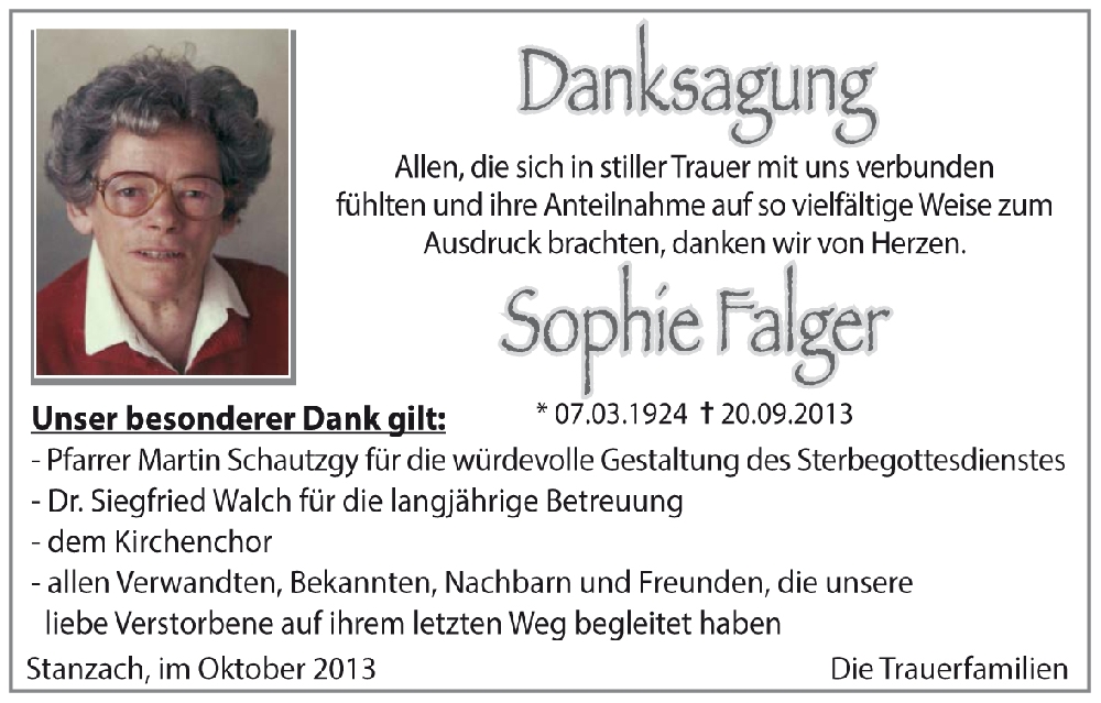 Kondolenzbuch für Sophie Falger