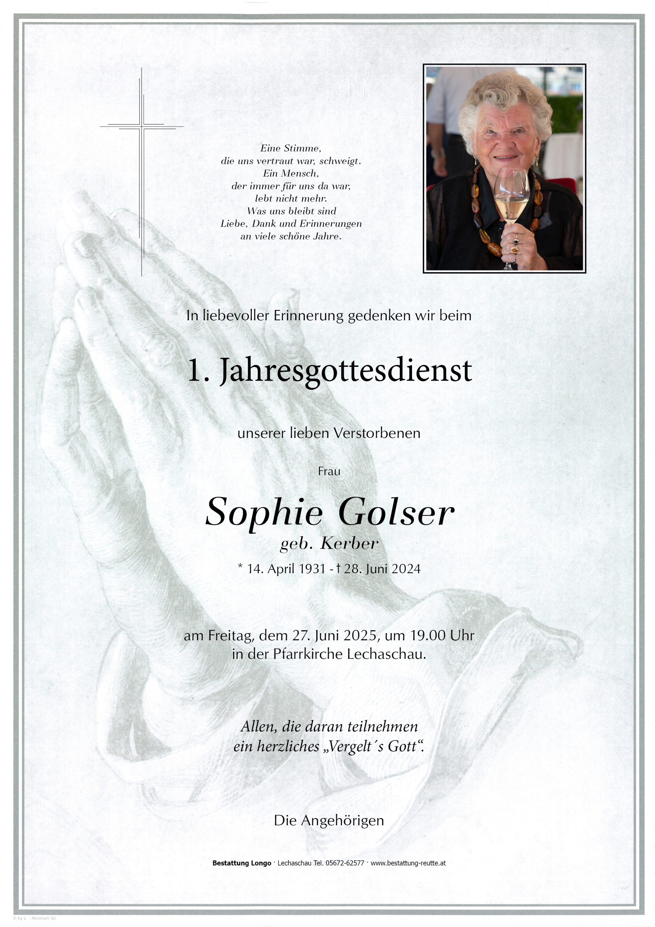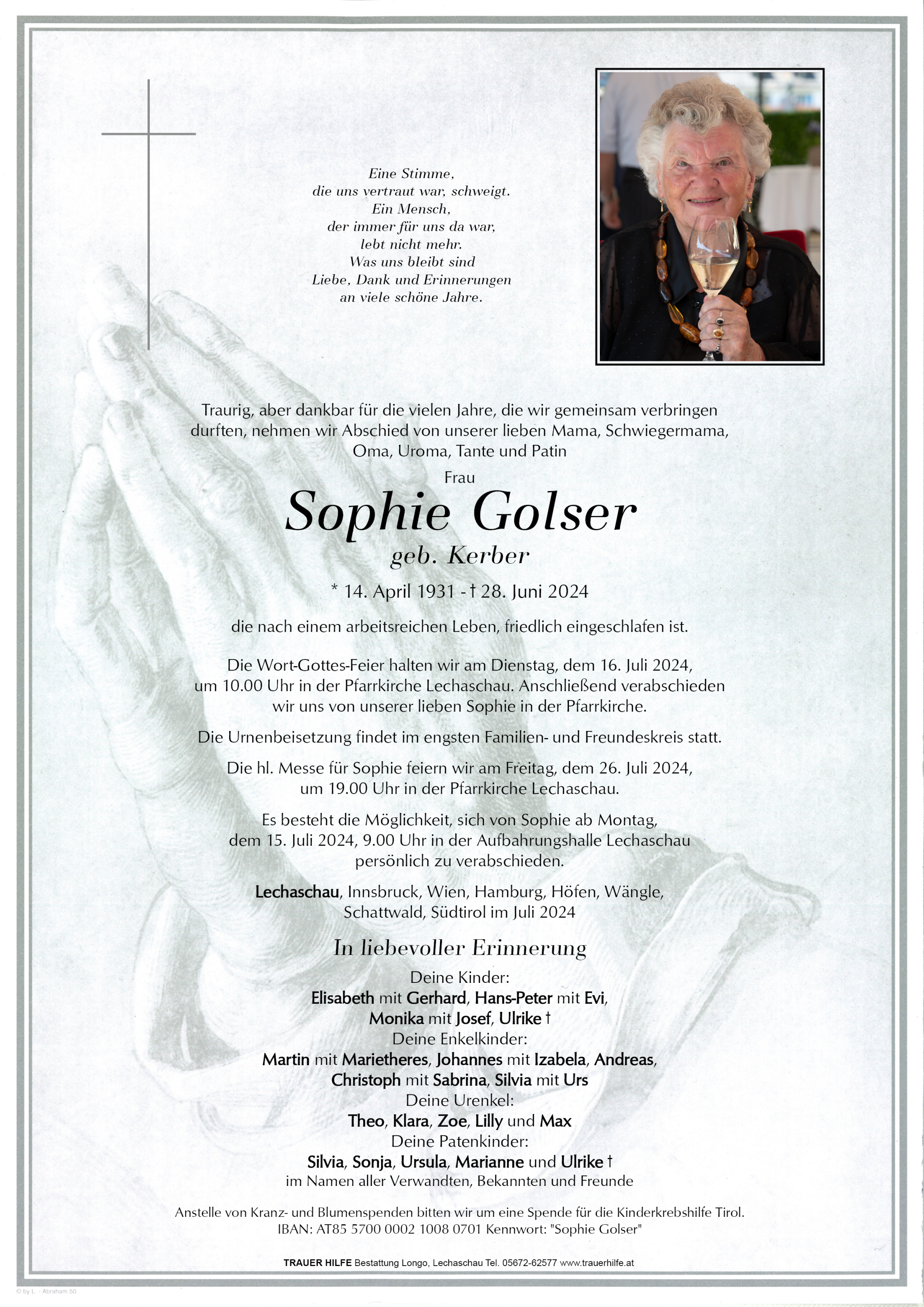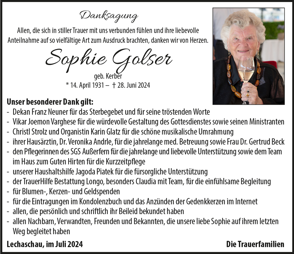 Kondolenzbuch für Sophie Golser