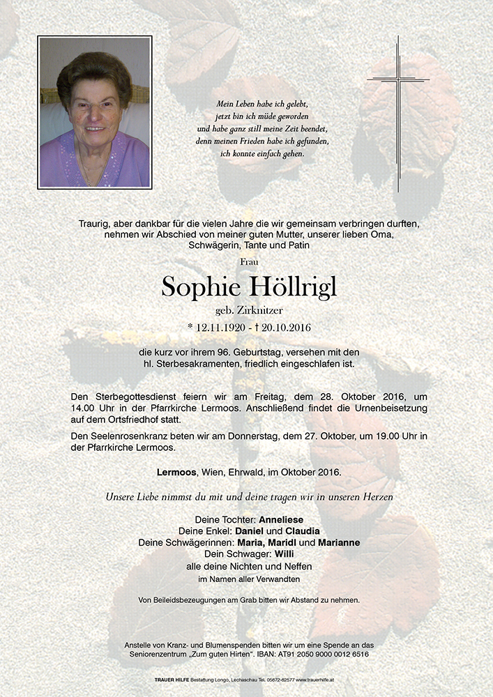 Kondolenzbuch für Sophie Höllrigl