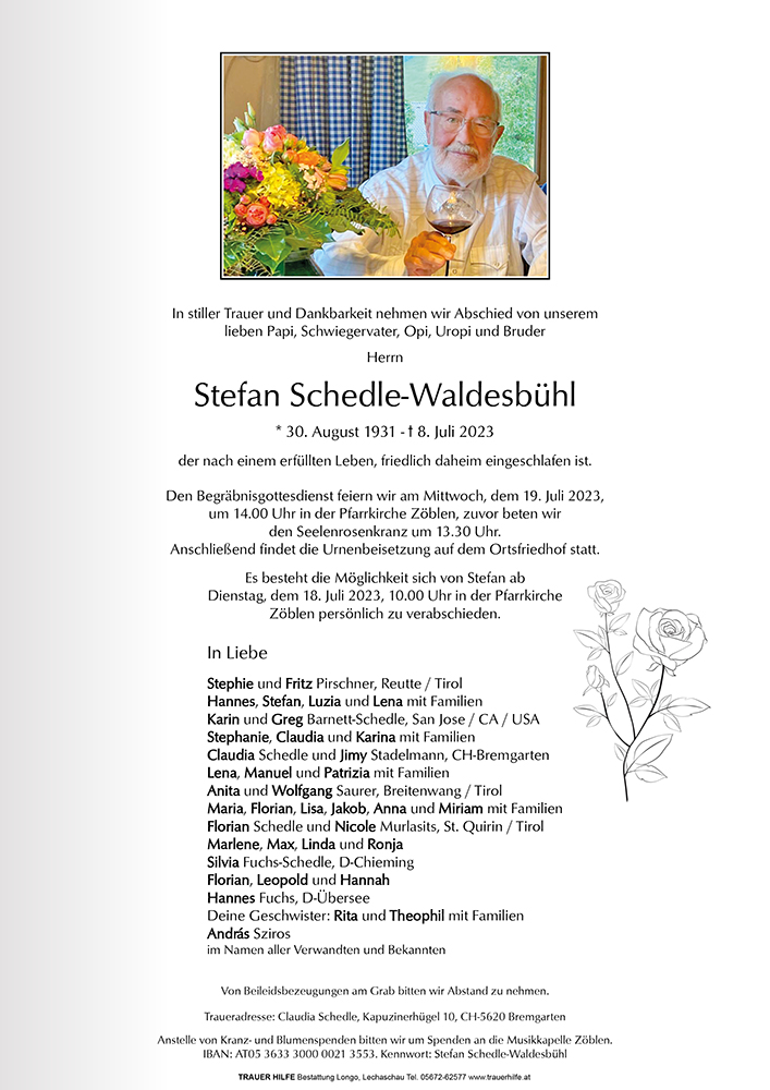 Kondolenzbuch für Stefan Schedle-Waldesbühl