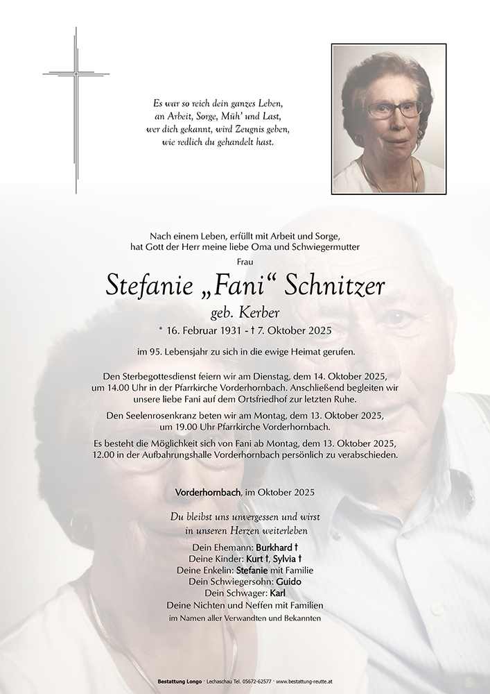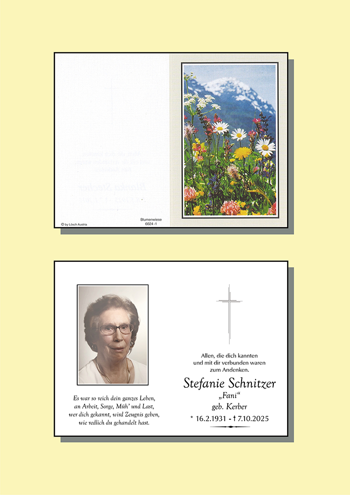 Leb\' wohl Fani! Danke, dass wir Dich auf Deinem Weg ein großes Stück lang begleiten durften. Du wirst mit Freude und Liebe von Gottes ausgestreckten Armen empfangen werden.