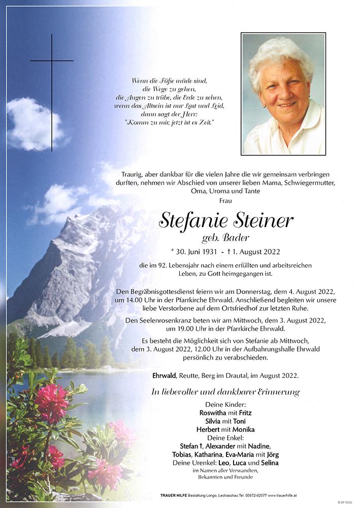 Steffi war so ein lieber Mensch, ich hab sie einfach gemocht. Leider kann ich ihr aus gesundheitlichen Gründen nicht die letzte Ehre geben, das macht mich traurig. Ich zünde ein Kerzli an und denk an sie und immer wieder an Isolde und George.