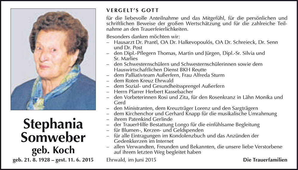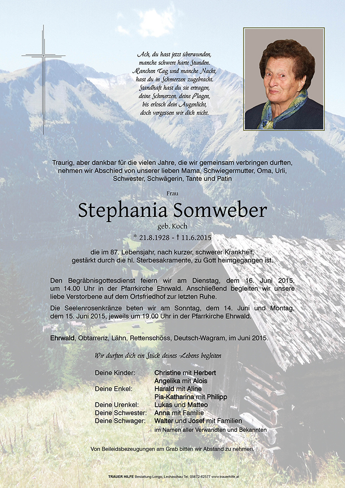 Aufrichtige Anteilnahme entbietet Barbara Schönherr mit Familie