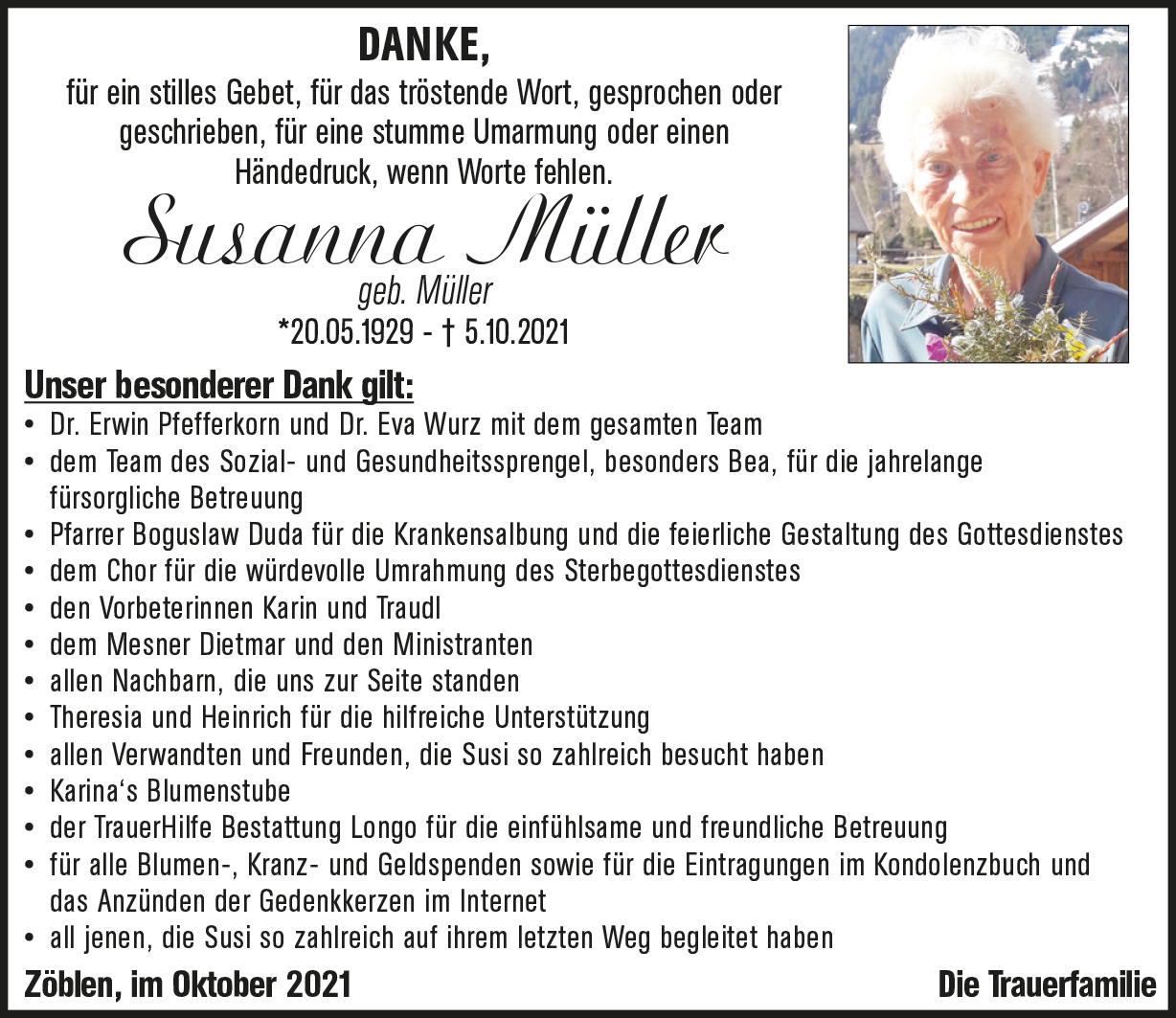 Kondolenzbuch für Susanna Müller