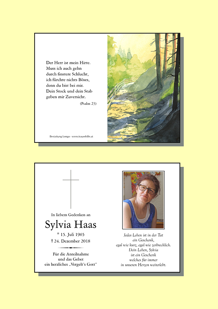 euer Herz ist von tiefer Trauer erfüllt, weil ein geliebter Mensch, eure liebe Sylvia, nicht mehr sichtbar unter euch/uns ist.