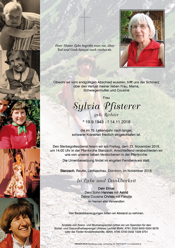 Kondolenzbuch für Sylvia Pfisterer