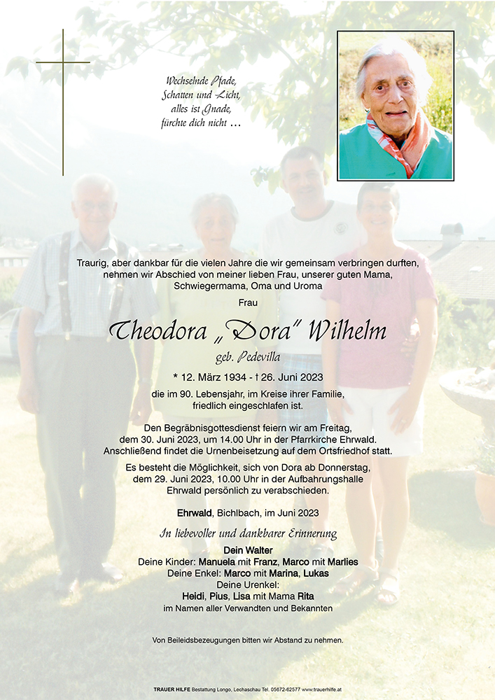 Kondolenzbuch für Theodora Wilhelm