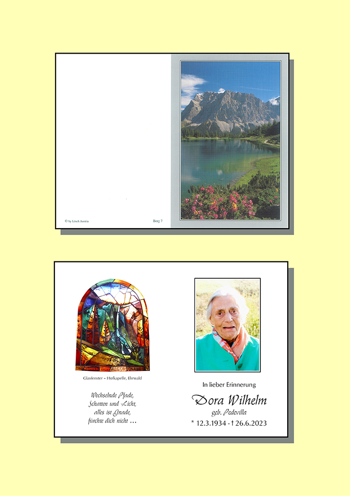 Aufrichtige Anteilnahme am Heimgang Deiner lieben Gattin, Eurer guten Mutter und Oma, entbietet Ingrid Kraxner m. Familie!