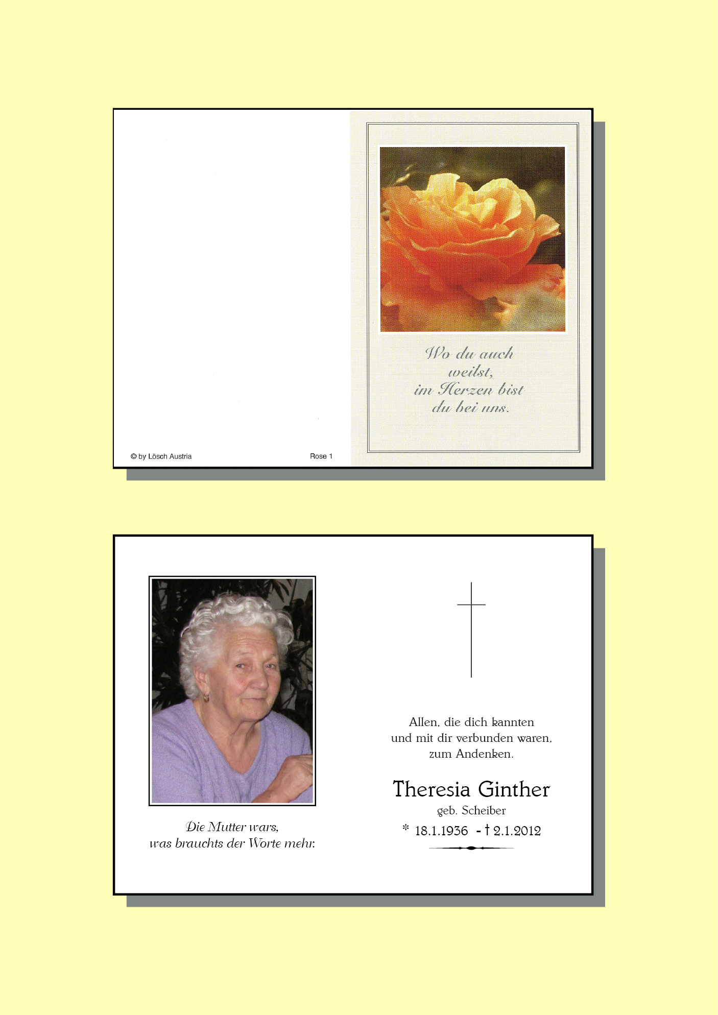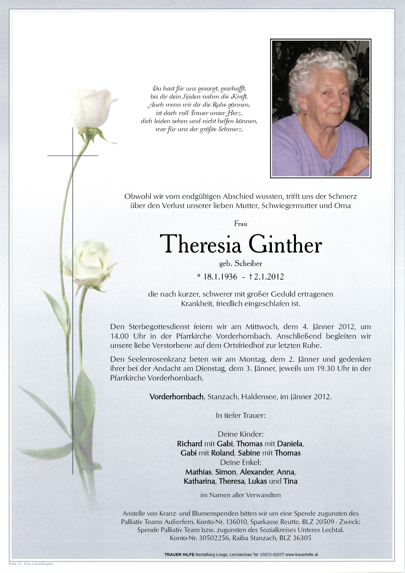 Kondolenzbuch für Theresia Ginther