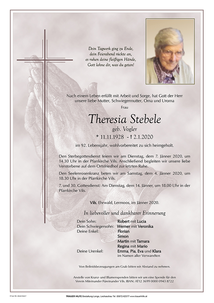 In meiner Kindheit habe ich viel Zeit bei Euch verbracht und war bei Resi immer willkommen. Ich werde Sie stets als liebevolle Nachbarin in Erinnerung behalten.