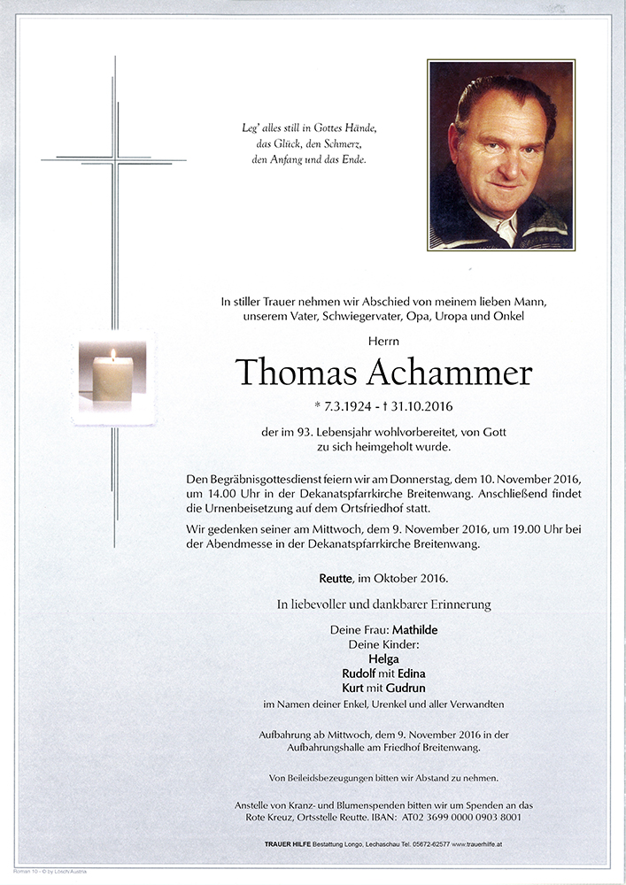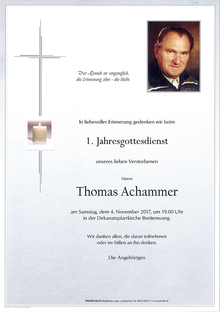 Kondolenzbuch für Thomas Achammer
