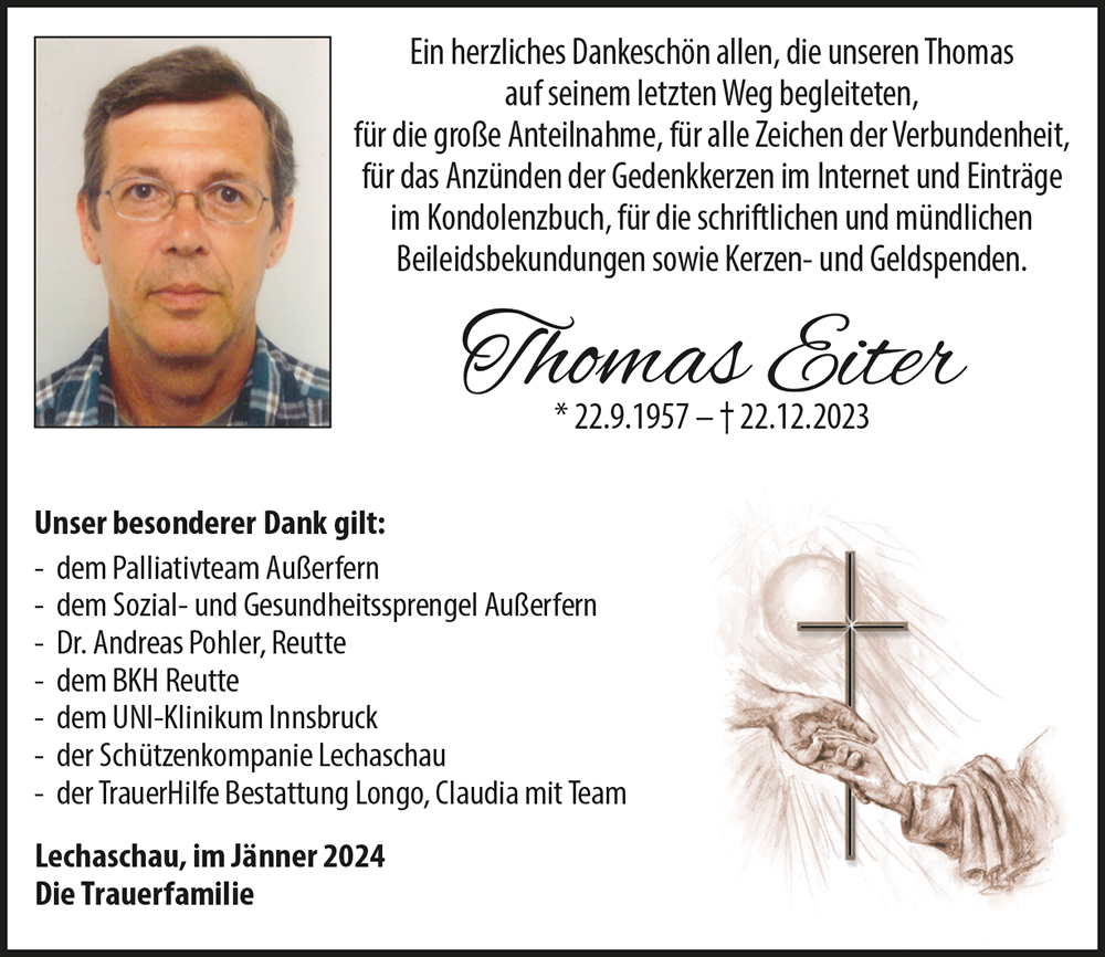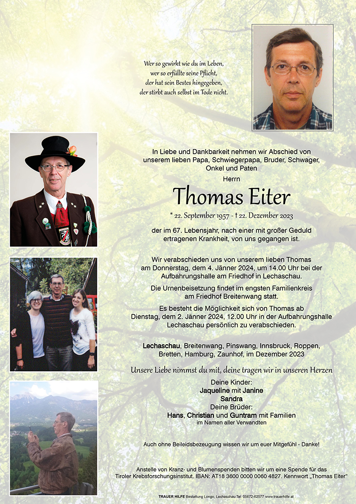 Lange hast du mit deinem Bruder gehofft, gebangt und mit Zuversicht auf eine gute Wendung gehofft, So gerne hätte Thomas noch einige Jahre seine Pension erlebt, aber der liebe Gott hatte einen anderen Plan.
