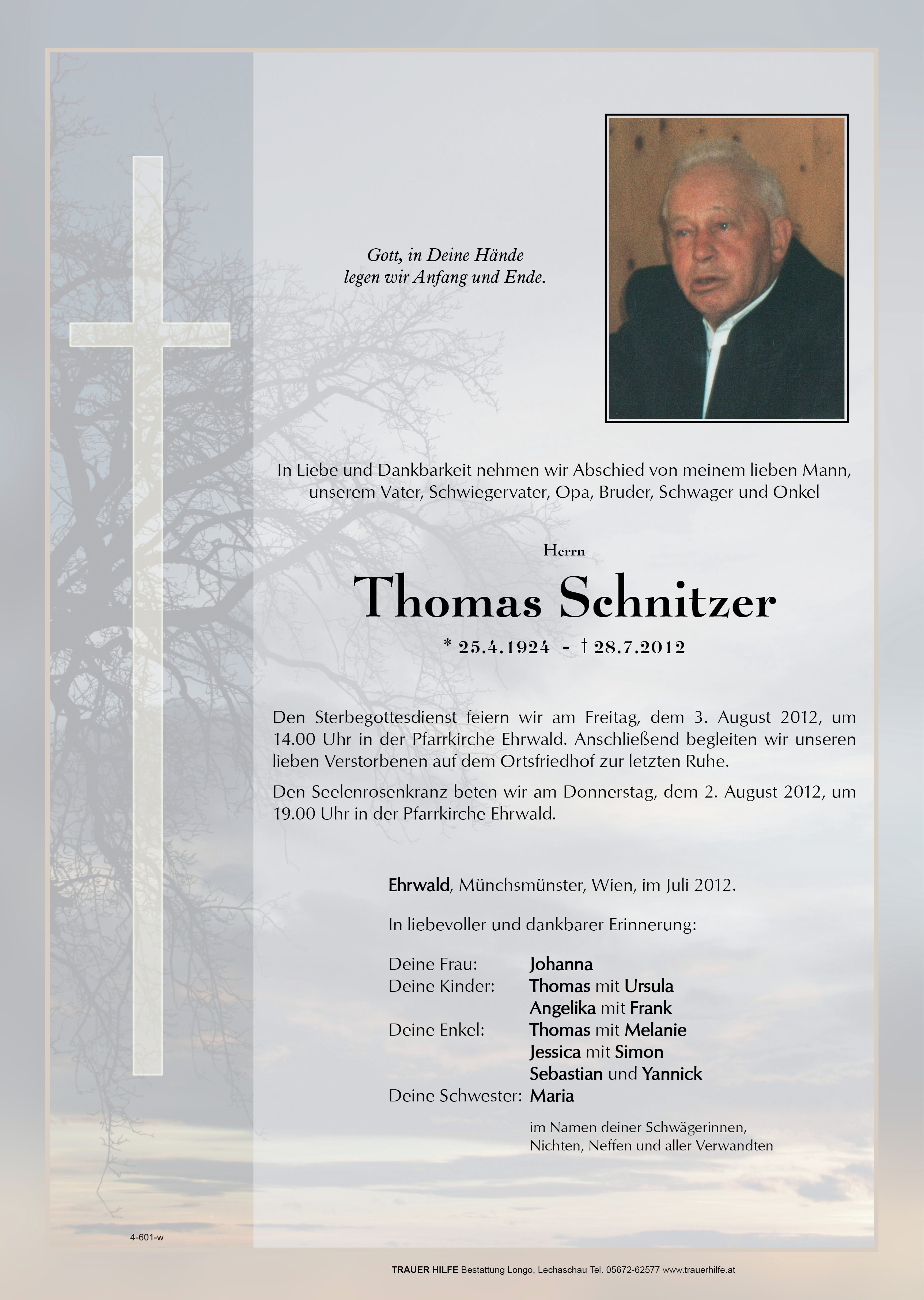 Lieber Thomas, liebe Ursula und trauernde Angehörige,