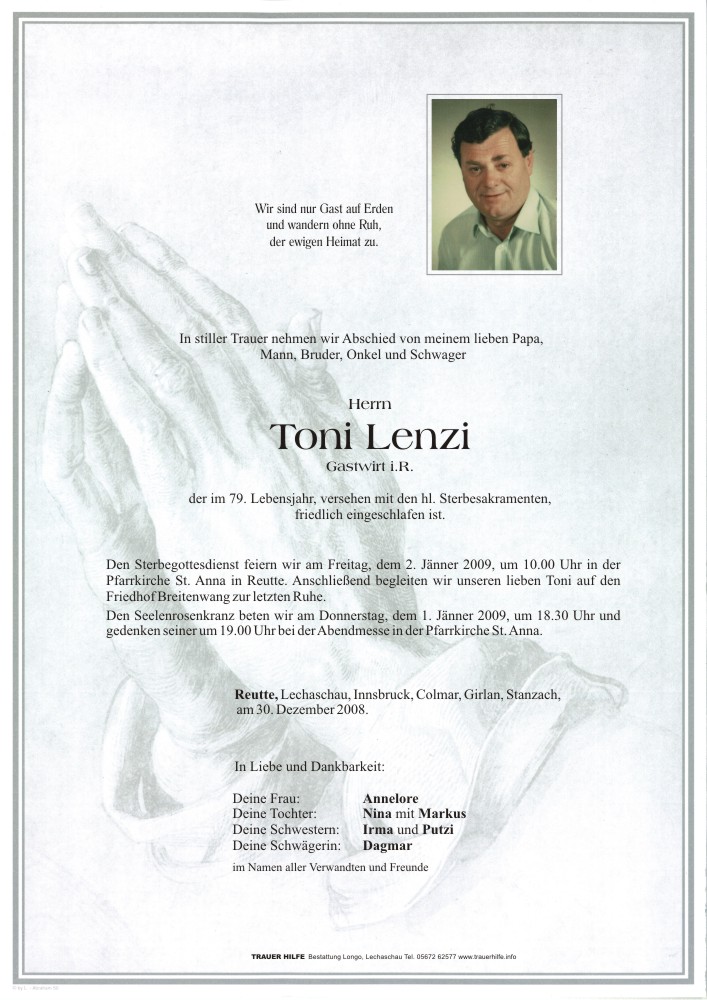 13.12.1901 30.12.2008 Reutte Toni Lenzi Action Parte Gedenkkerzen Kondolenzen Parte Gedenkkerzen Kondolenzen Parte herunterladen Gedenkkerzen fßr Toni Lenzi 17 Einträge Kerze anzßnden ⤠Luisa,Gabriel, Nina und Markus ⤠⤠Luisa,Gabriel, Nina und Markus ⤠⤠Luisa,Gabriel, Nina und Markus ⤠Ein Licht fßr die Ewigkeit! Nina, Markus, Gabriel und Luisa Ein Licht zum Jahrestags-Gedenken Nina, Markus, Gabriel und Luisa Ein Licht fßr die Ewigkeit! Nina, Markus, Gabriel und Luisa Ein Licht fßr die Ewigkeit! Ruhe sanft in Gottes Hand! Ruhe in Frieden! Ruhe in Frieden! Nina, Markus, Gabriel und Luisa Nina, Markus, Gabriel und Luisa Gerti, Andi, Adrian + Samuel Fam. Gßnter und Gitti Muglach Ihre Gedenkkerze fßrToni Lenzi Ihr Name* Farbe auswählen Ihre Nachricht oder Name* E-Mail-Adresse* Mit dem Klicken auf "Kerze anzßnden" erklären Sie sich mit unseren Datenschutzbestimmungen einverstanden. Kondolenzbuch fßr Toni Lenzi 0 Einträge Kondolenz verfassen Ihr Abschiedsgruà an Toni Lenzi Ihr Name* E-Mail-Adresse* Ihre Nachricht* Mit dem Klicken auf "Gruà absenden" erklären Sie sich mit unseren Datenschutzbestimmungen einverstanden.