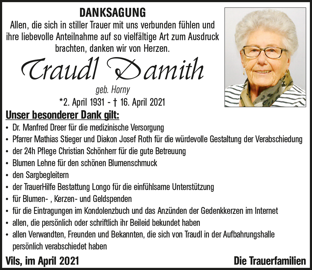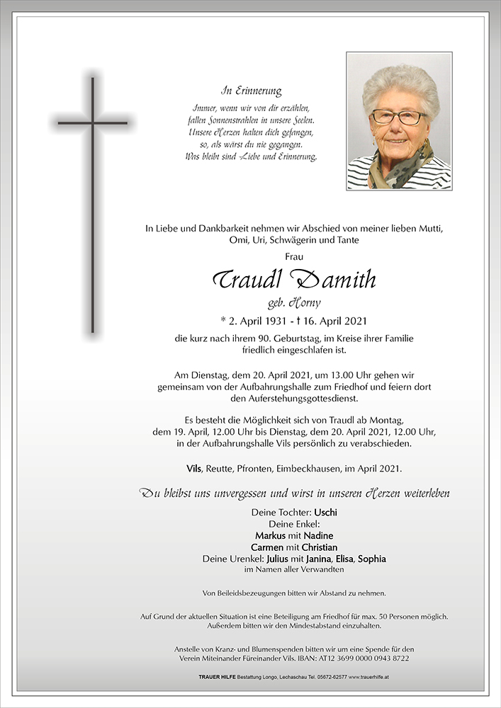Kondolenzbuch für Traudl Damith