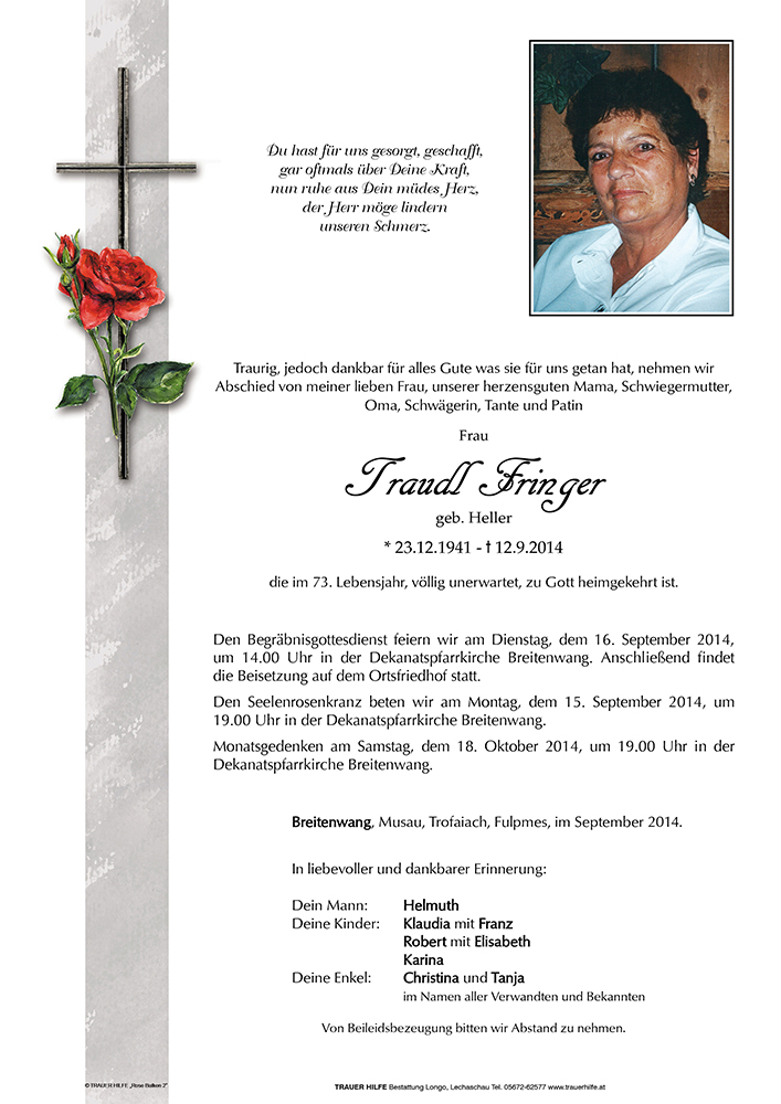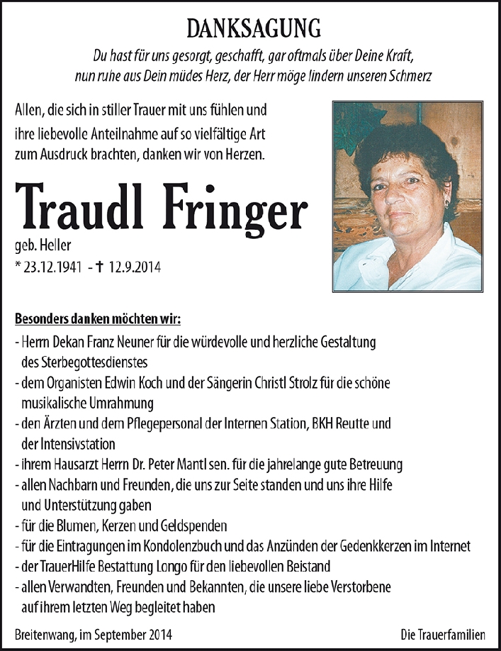 Kondolenzbuch für Traudl Fringer