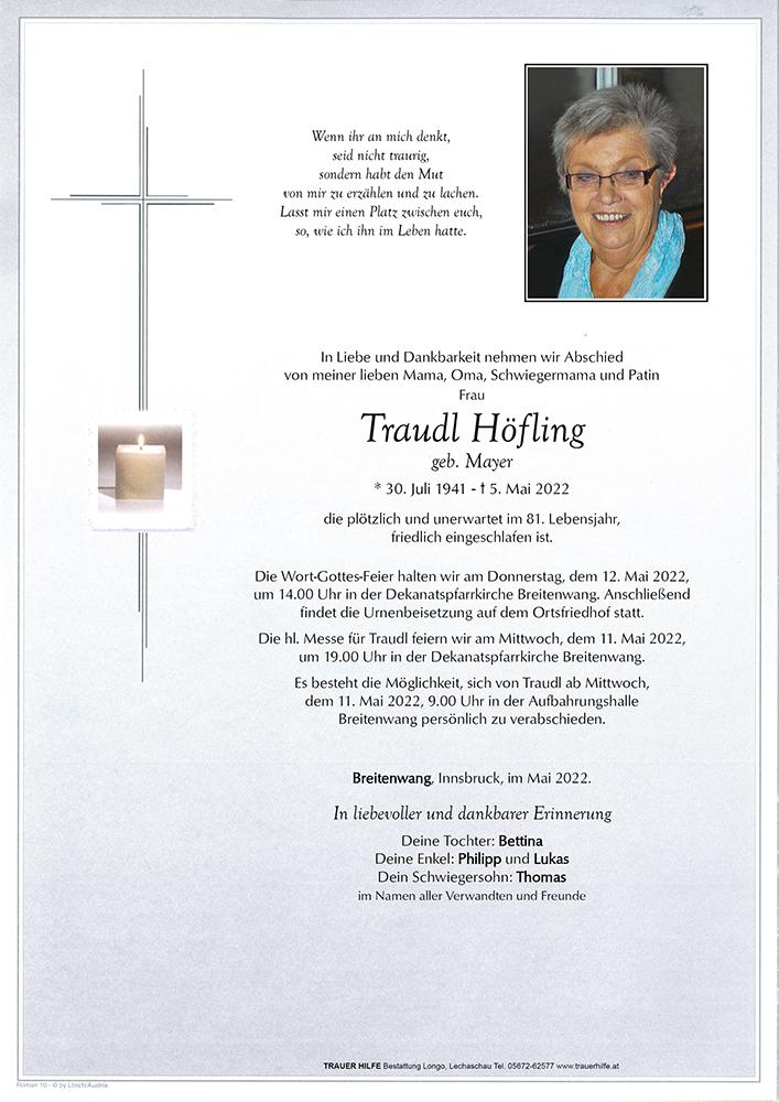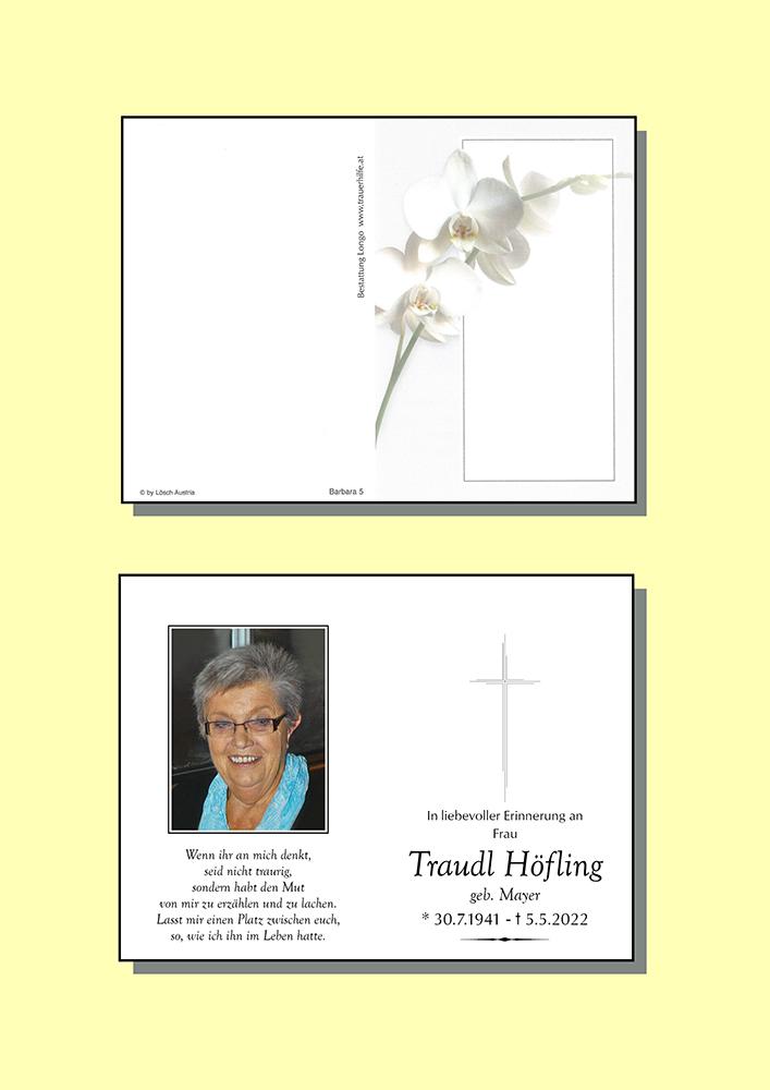 Mit tiefer Betroffenheit nehmen wir den Heimgang von Traudl war.