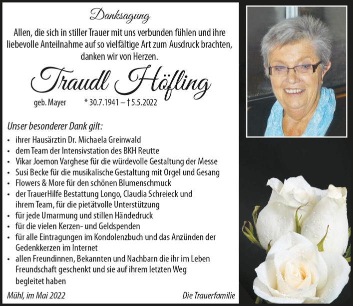 mit Betroffenheit haben wir, die Ausschussmitglieder der PVÖ Bezirksorganisation Reutte, die Nachricht vom Ableben unseres Mitgliedes und langjährigen Funktionärin vernommen. Auf diesem Weg möchten wir unser tiefes Mitgefühl und aufrichtige Anteilnahme übermitteln. Wir werden Traudl immer in guter Erinnerung behalten und ihrer Gedenken.