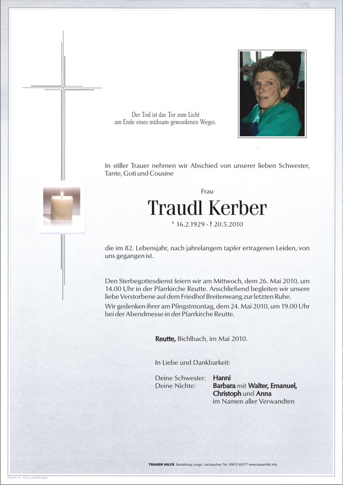 13.12.1901 20.05.2010 Reutte Traudl Kerber Action Parte Sterbebild Gedenkkerzen Kondolenzen Danksagung Parte Sterbebild Gedenkkerzen Kondolenzen Danksagung Parte herunterladen Sterbebild herunterladen Gedenkkerzen für Traudl Kerber 0 Einträge Kerze anzünden Ihre Gedenkkerze fürTraudl Kerber Ihr Name* Farbe auswählen Ihre Nachricht oder Name* E-Mail-Adresse* Mit dem Klicken auf "Kerze anzünden" erklären Sie sich mit unseren Datenschutzbestimmungen einverstanden. Kondolenzbuch für Traudl Kerber 0 Einträge Kondolenz verfassen Ihr Abschiedsgruß an Traudl Kerber Ihr Name* E-Mail-Adresse* Ihre Nachricht* Mit dem Klicken auf "Gruß absenden" erklären Sie sich mit unseren Datenschutzbestimmungen einverstanden. Danksagung herunterladen