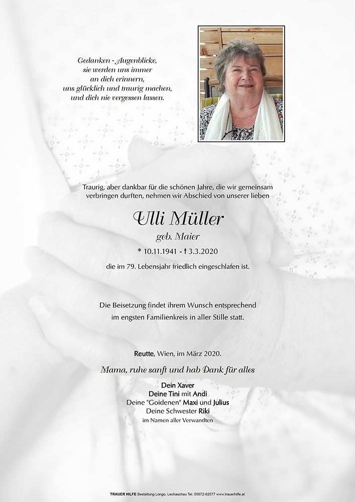 Wir wünschen euch viel Kraft und Zusammenhalt für jetzt und die kommende Zeit. Lisi, Thomas und Otto