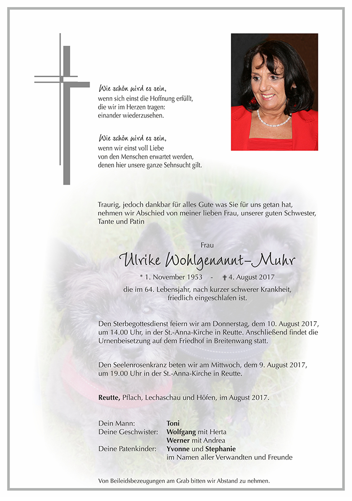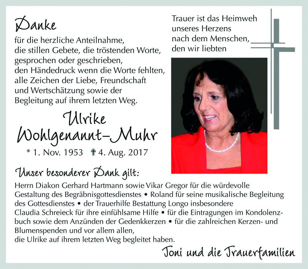 Kondolenzbuch fĂĽr Ulrike Wohlgenannt-Muhr