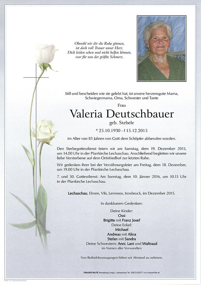 Kondolenzbuch für Valeria Deutschbauer
