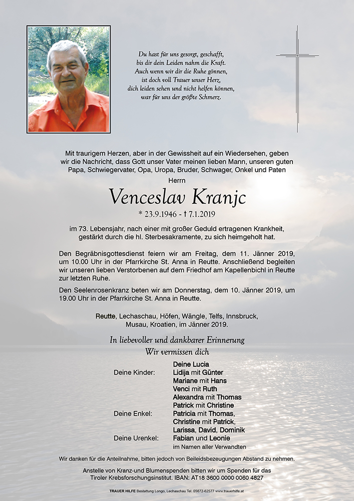 Kondolenzbuch für Venceslav Kranjc