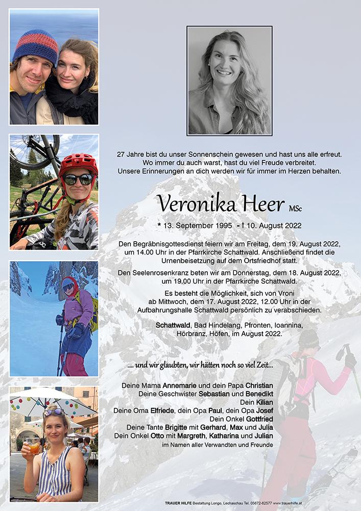 In tiefer Betroffenheit haben wir vom plötzlichen Tode von Veronika erfahren, die bei uns die Höhere Lehranstalt für wirtschaftliche Berufe erfolgreich abgeschlossen hat.