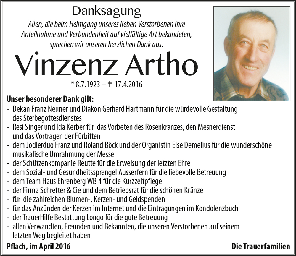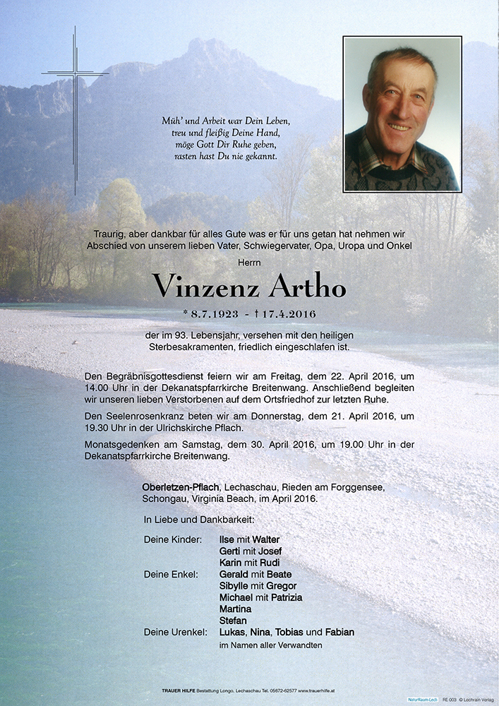 Mein aufrichtiges Beileid zum Heimgang des lieben Artho.