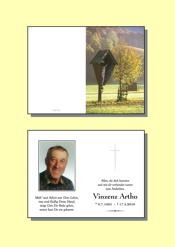 Kondolenzbuch für Vinzenz Artho