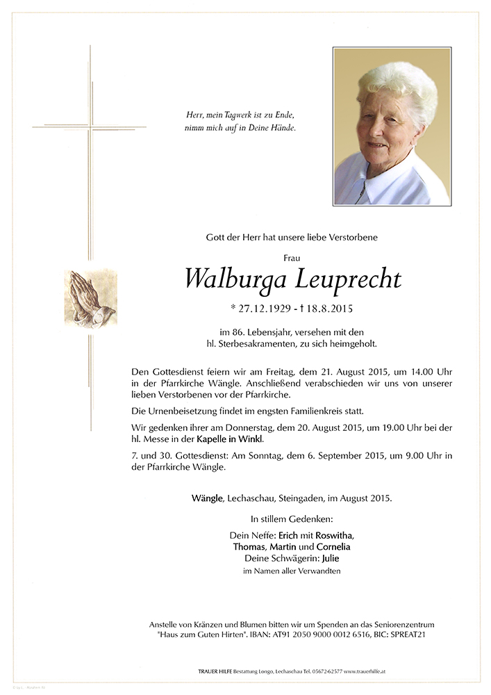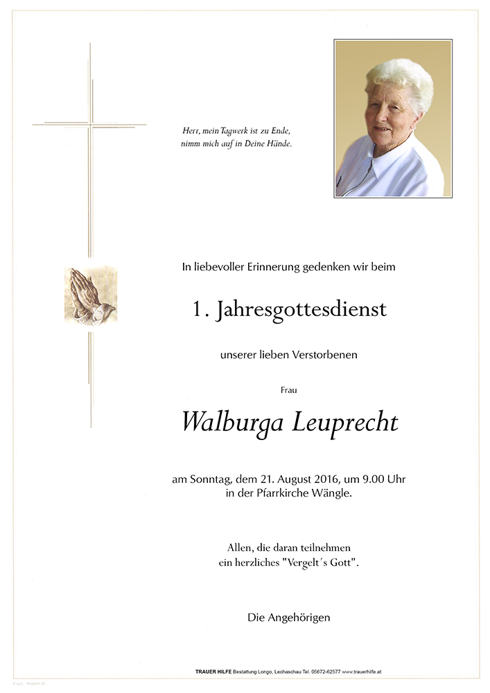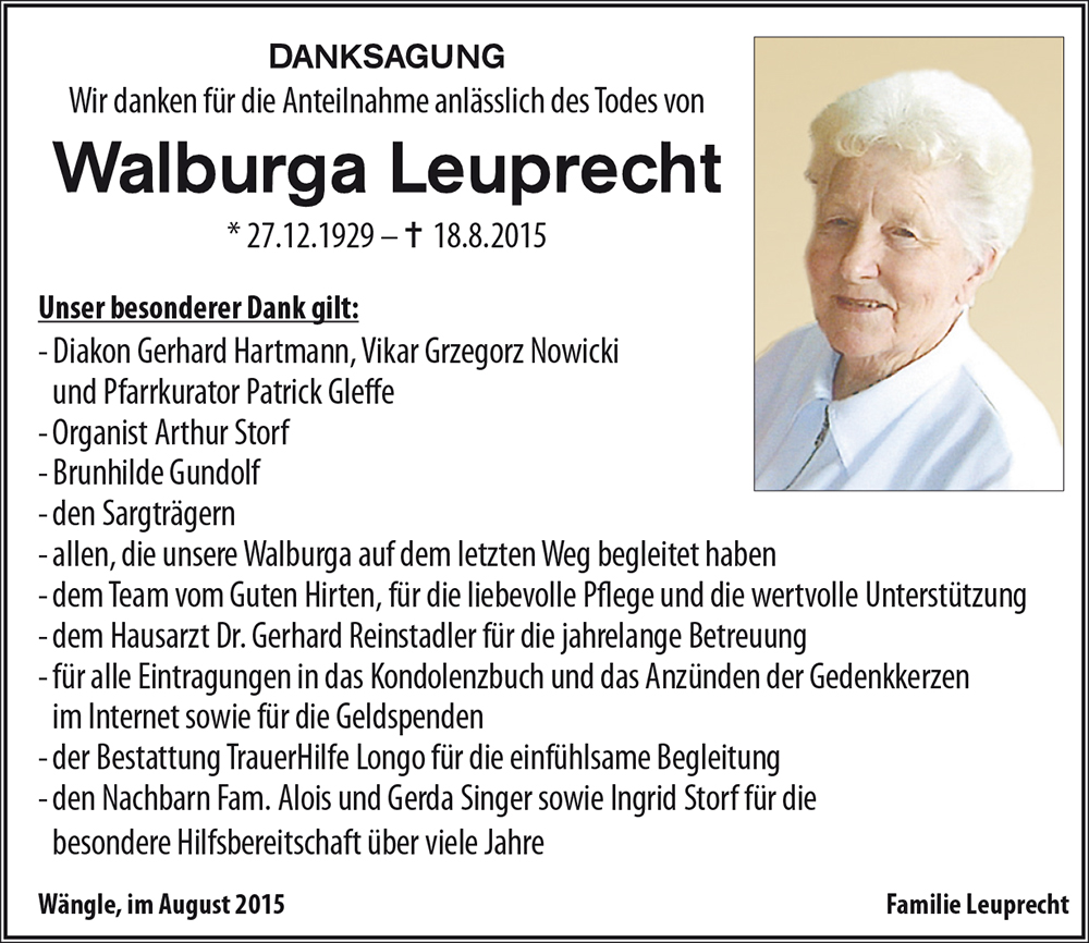 Kondolenzbuch für Walburga Leuprecht