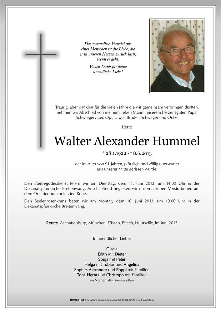 Darf euch mein aufrichtiges Beileit zukommenlassen. Auf diesem Wege auch Danke fuer die Gastfreundtschaft die wir Freunde in lang vergangenen Jahren im Hause eures Vaters erleben durften.