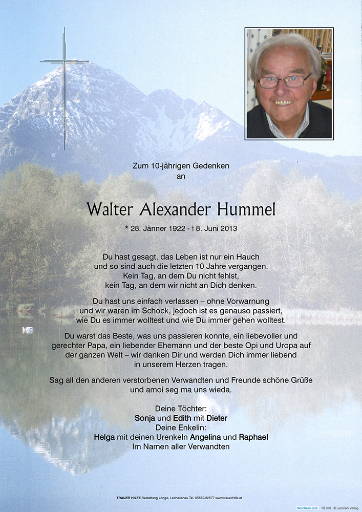 Onkel Walter wird uns für immer mit seiner lieben,fröhlichen und lebenslustigen Art in Erinnerung bleiben!
