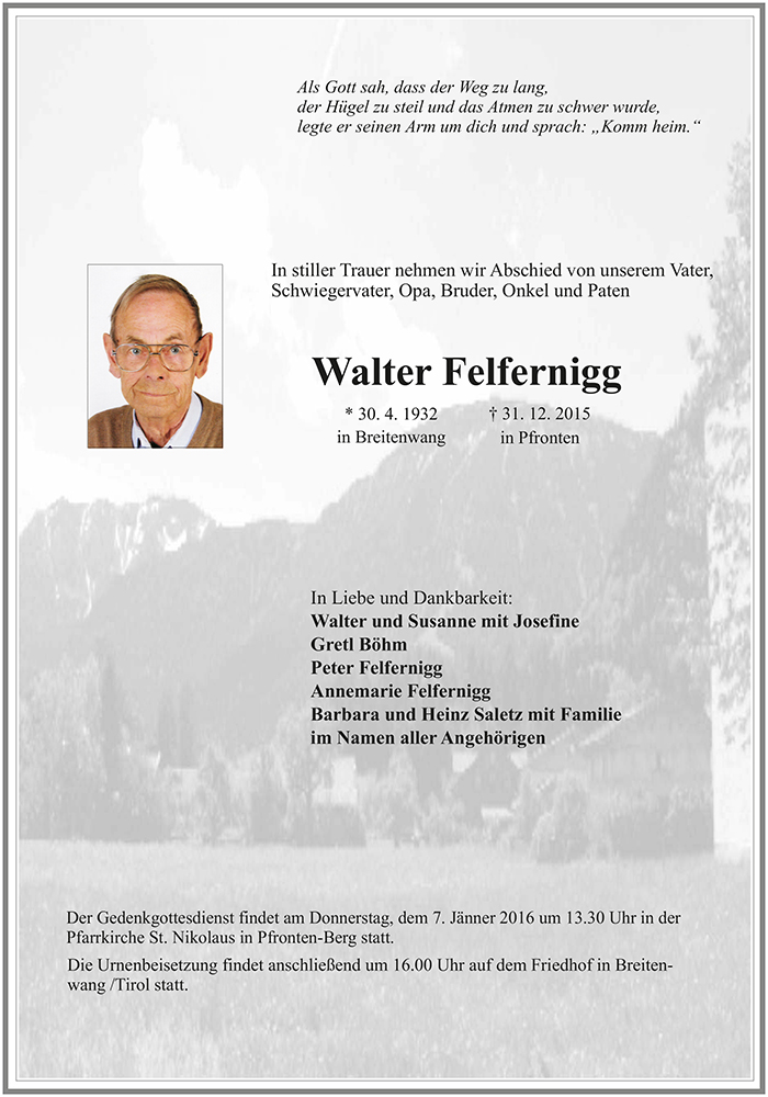 Kondolenzbuch für Walter Felfernigg