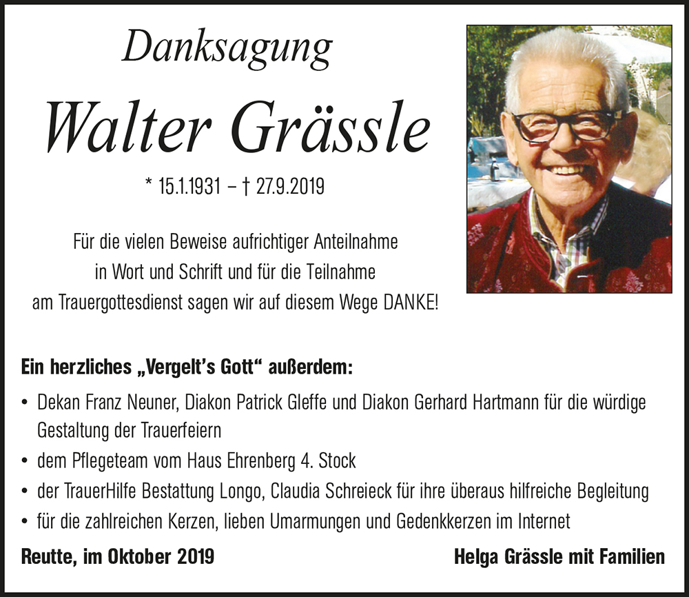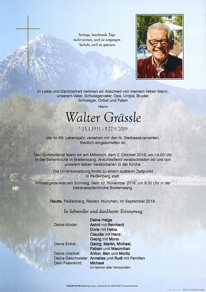 Kondolenzbuch für Walter Grässle
