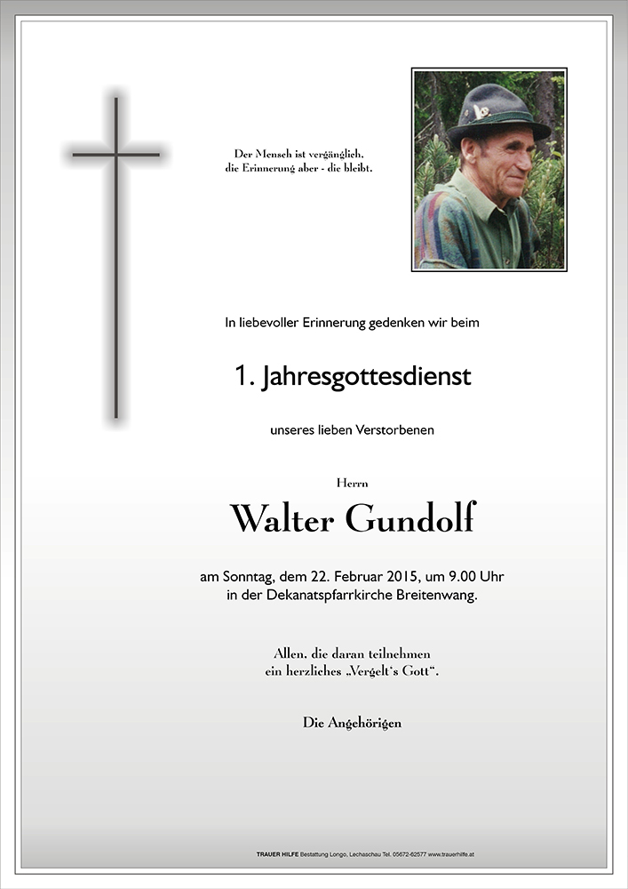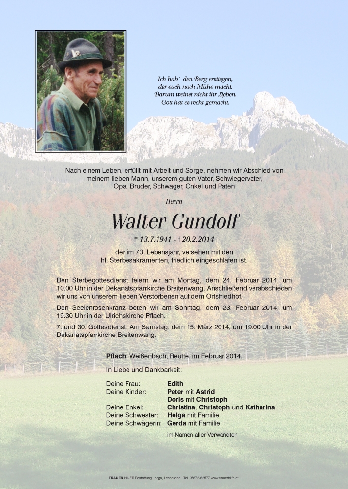 Vertrauen wir darauf, dass es Walter im Reich Gottes gut hat.