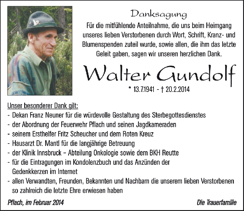 Wir wünschen euch allen sehr viel Kraft in der so schweren Zeit der Trauer und des Weitermachens ohne euren Walter. Mit aufrichtiger Anteilnahme