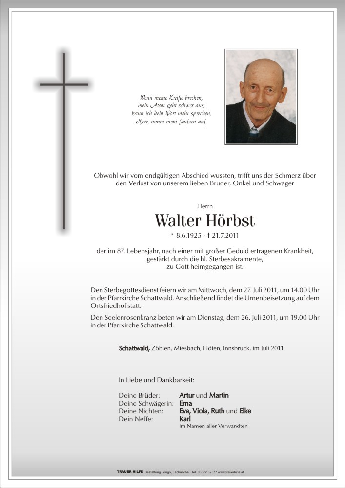 13.12.1901 21.07.2011 Schattwald Walter Hörbst Action Parte Sterbebild Gedenkkerzen Kondolenzen Danksagung Parte Sterbebild Gedenkkerzen Kondolenzen Danksagung Parte herunterladen Sterbebild herunterladen Gedenkkerzen für Walter Hörbst 2 Einträge Kerze anzünden Unvergessen! Albert & Rosi In stillem Gedenken Rainer Ihre Gedenkkerze fürWalter Hörbst Ihr Name* Farbe auswählen Ihre Nachricht oder Name* E-Mail-Adresse* Mit dem Klicken auf "Kerze anzünden" erklären Sie sich mit unseren Datenschutzbestimmungen einverstanden. Kondolenzbuch für Walter Hörbst 0 Einträge Kondolenz verfassen Ihr Abschiedsgruß an Walter Hörbst Ihr Name* E-Mail-Adresse* Ihre Nachricht* Mit dem Klicken auf "Gruß absenden" erklären Sie sich mit unseren Datenschutzbestimmungen einverstanden. Danksagung herunterladen