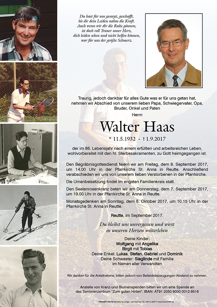 Kondolenzbuch für Walter Haas