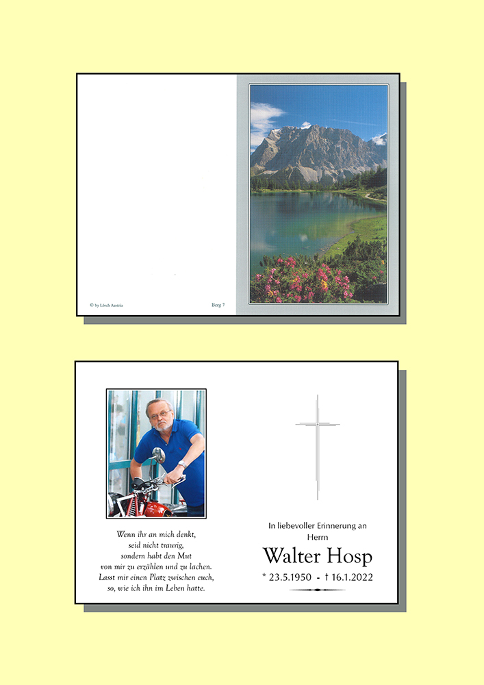 Es hat mich sehr getroffen ,wo ich erfahren habe das Walter gestorben ist. Ja die letzten Jahre waren sehr schmerzhaft für ihn ,aber er hat es im Stillen ertragen.