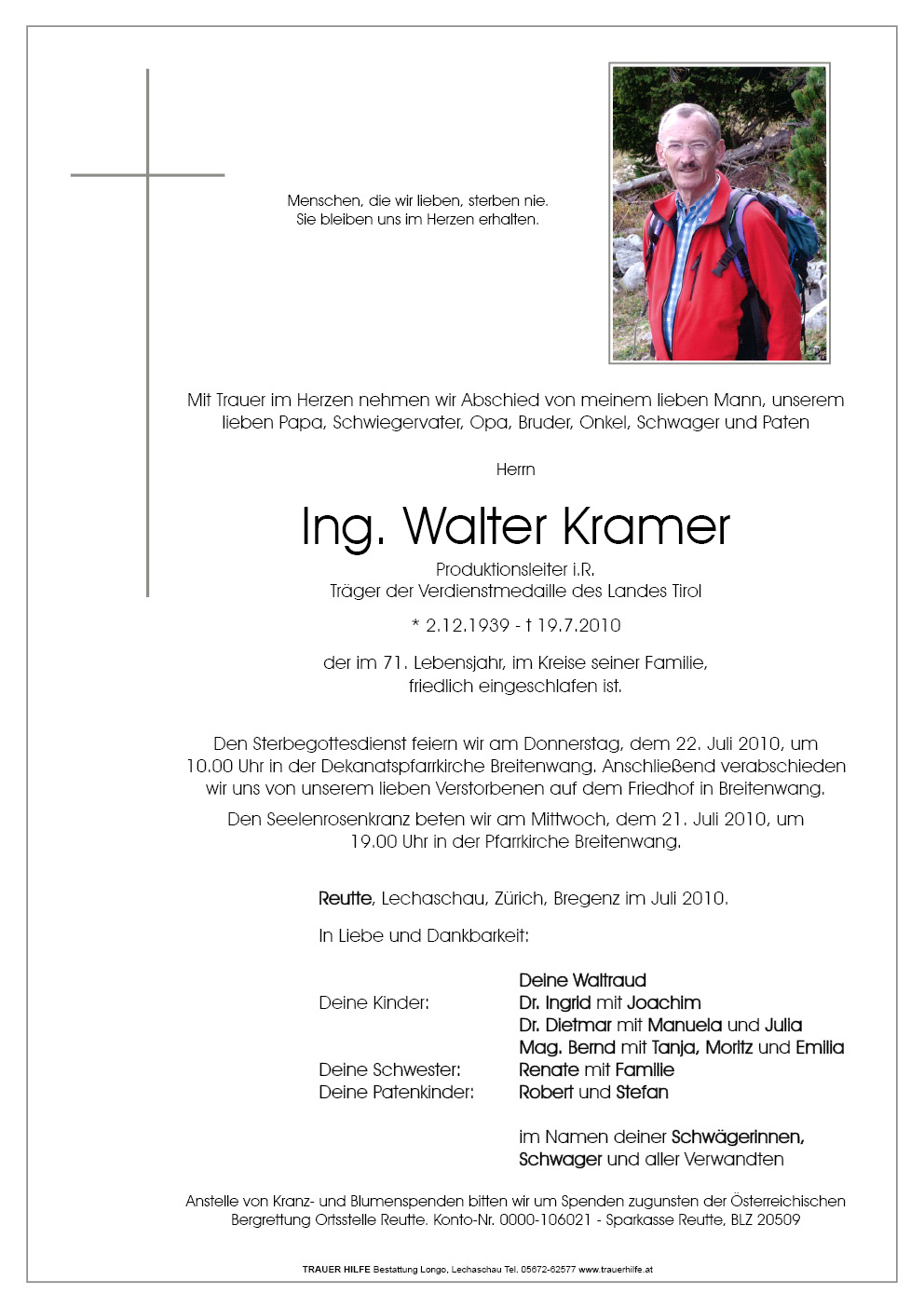 13.12.1901 19.07.2010 Reutte Walter Kramer Action Parte Sterbebild Gedenkkerzen Kondolenzen Danksagung Parte Sterbebild Gedenkkerzen Kondolenzen Danksagung Parte herunterladen Sterbebild herunterladen Gedenkkerzen für Walter Kramer 0 Einträge Kerze anzünden Ihre Gedenkkerze fürWalter Kramer Ihr Name* Farbe auswählen Ihre Nachricht oder Name* E-Mail-Adresse* Mit dem Klicken auf "Kerze anzünden" erklären Sie sich mit unseren Datenschutzbestimmungen einverstanden. Kondolenzbuch für Walter Kramer 0 Einträge Kondolenz verfassen Ihr Abschiedsgruß an Walter Kramer Ihr Name* E-Mail-Adresse* Ihre Nachricht* Mit dem Klicken auf "Gruß absenden" erklären Sie sich mit unseren Datenschutzbestimmungen einverstanden. Danksagung herunterladen
