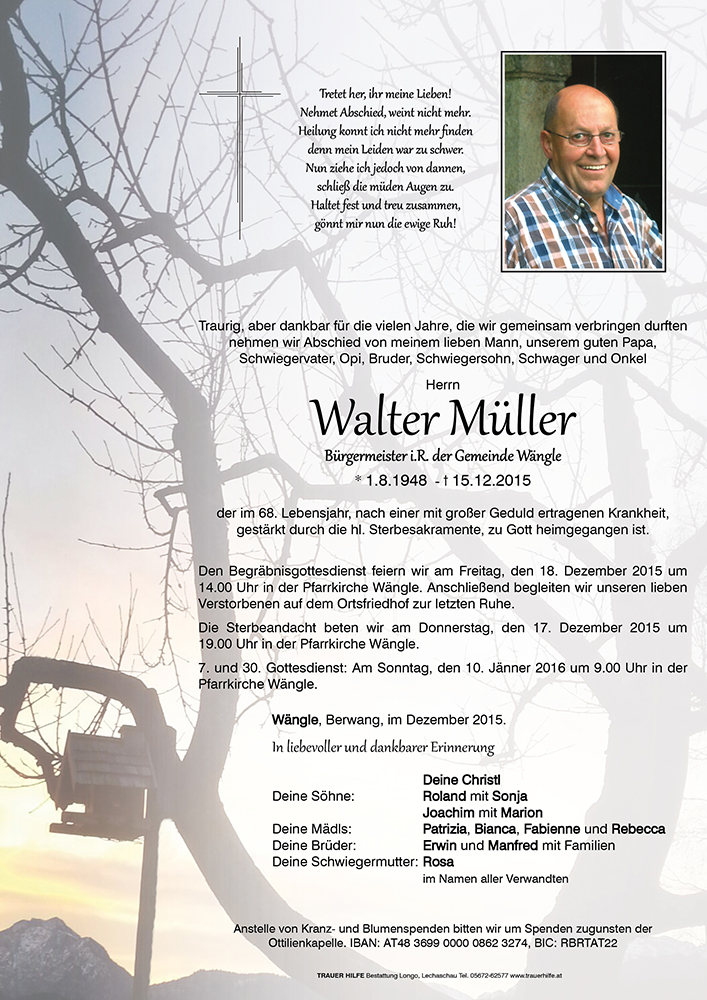 Zum so schmerzlichen Ableben von Walter entbieten wir unsere tiefempfun-