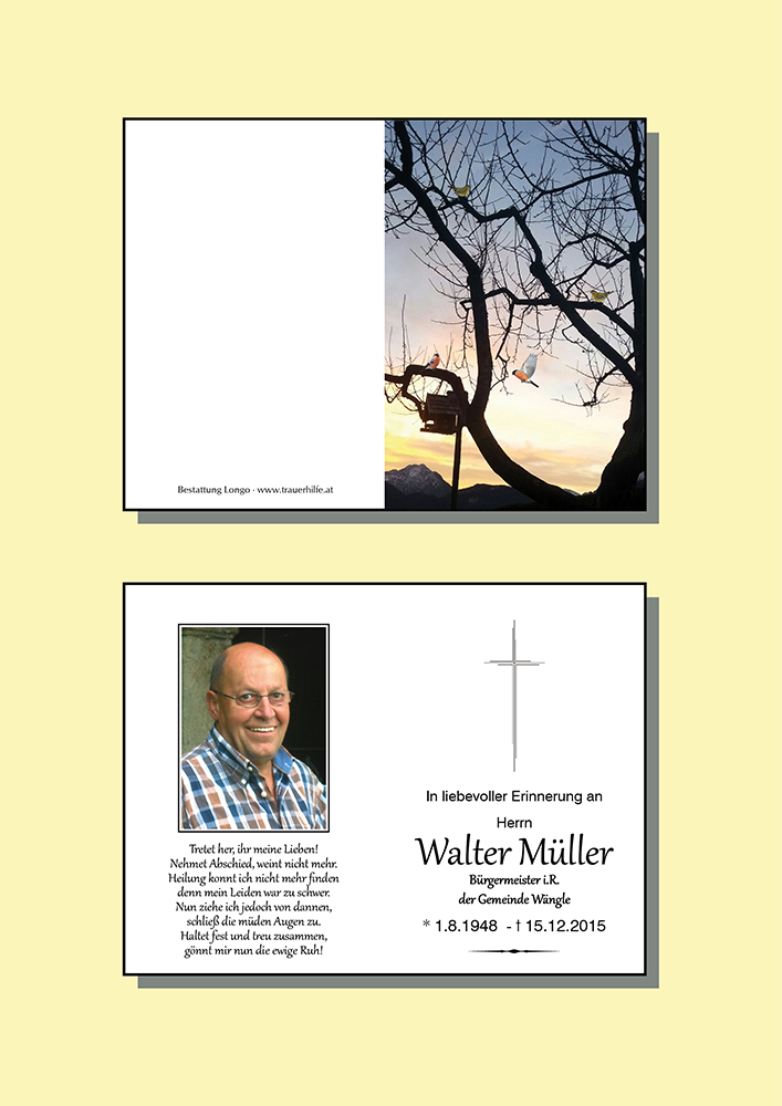 Kondolenzbuch für Walter Müller