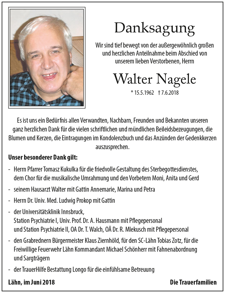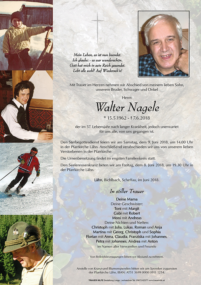 Kondolenzbuch für Walter Nagele