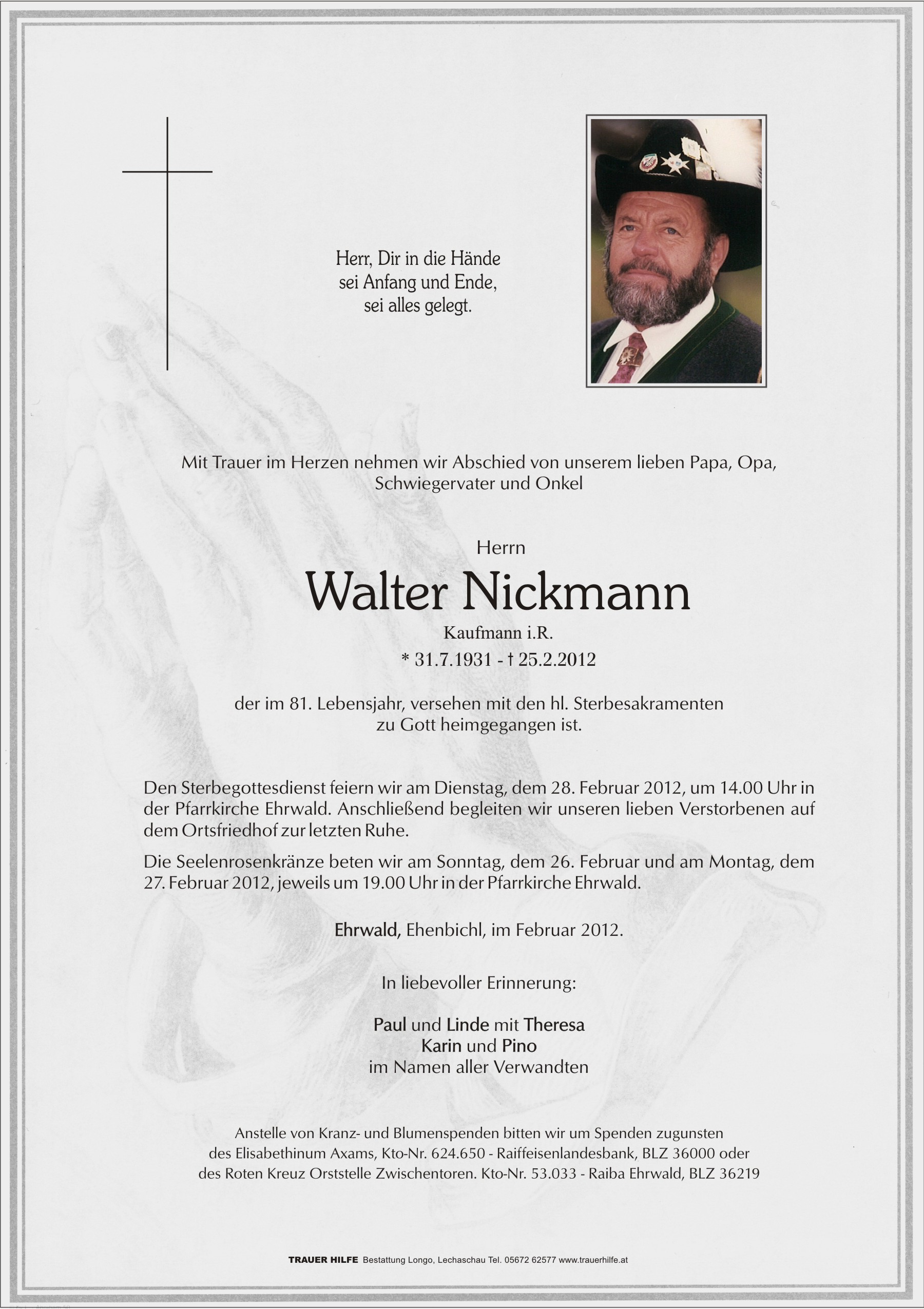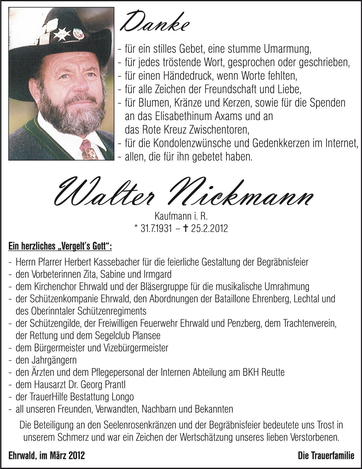 Als langjähriger Besucher von Ehrwald ( Verwandter von Cornel Kerber ) habe ich Herrn Nickmann sehr oft getroffen - vielfach im Tageblatt -.
