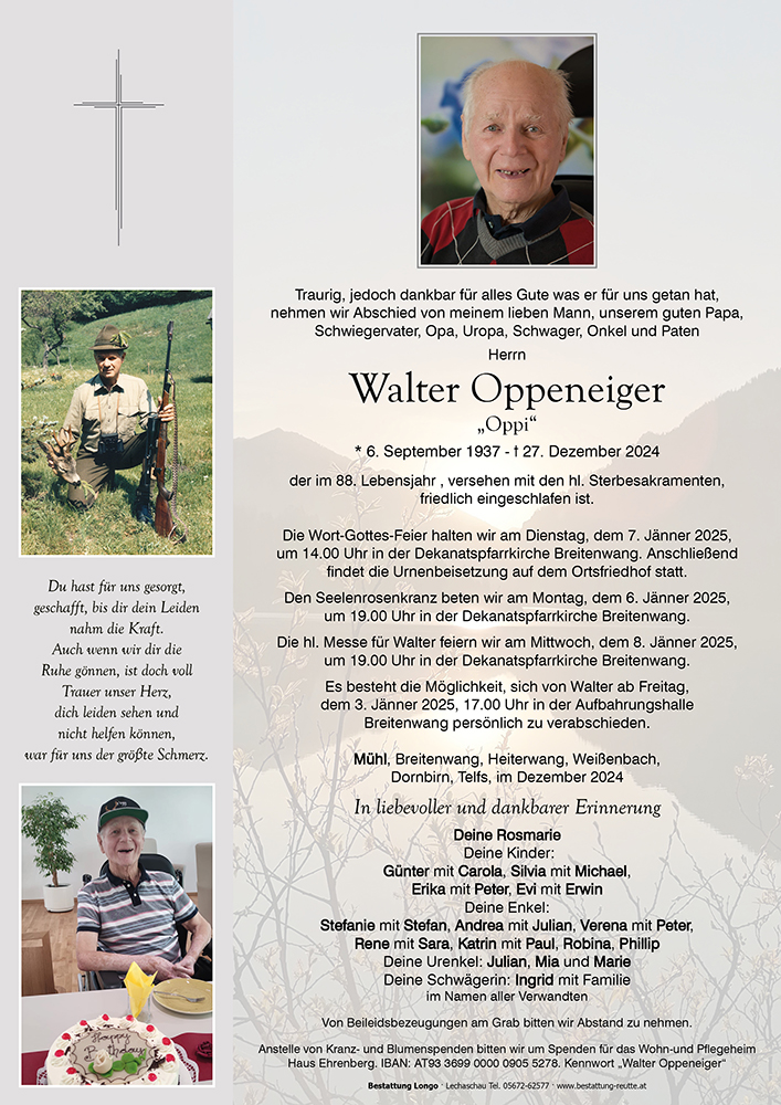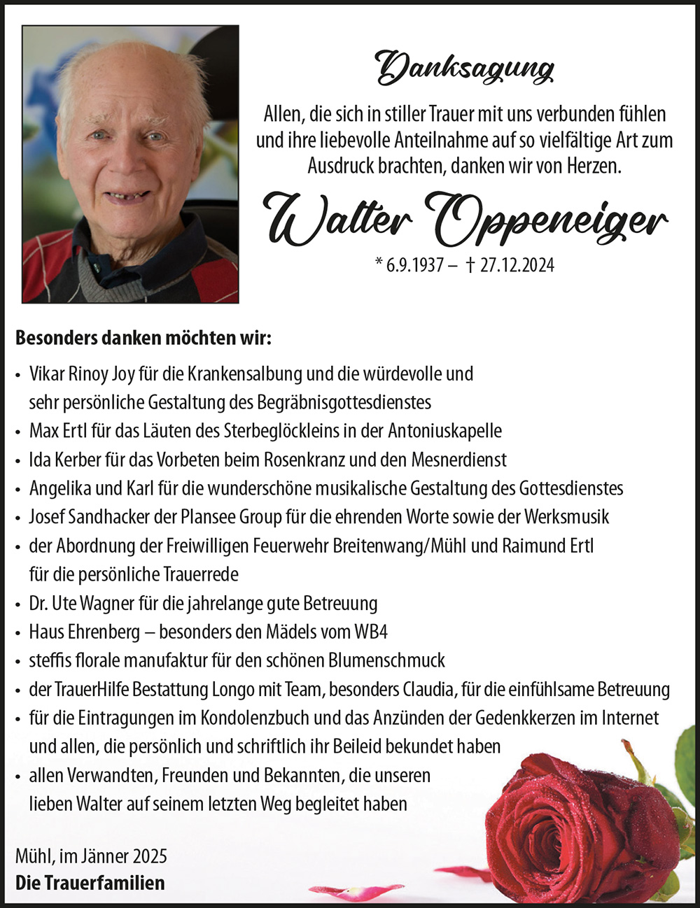 Zum Ableben von Walter möchten wir unser aufrichtiges Beileid und unser Mitgefühl ausdrücken. Wir wünschen euch viel Kraft in diesen schweren Stunden.