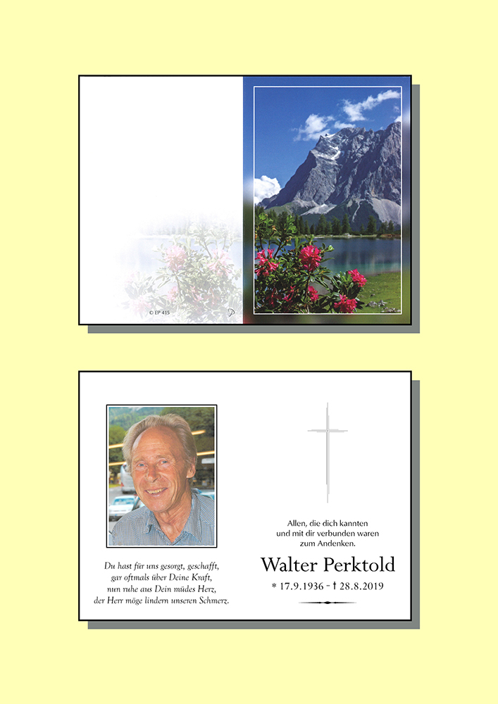 Wir entbieten unsere aufrichtige Anteilnahme am plötzlichen Heimgang von deinem geliebten Walter. Er war uns ein guter Freund und Bergkamerad. Wir wünschen dir für die kommende schwere Zeit viel Gottvertrauen und Kraft. Wir werden Walter ein ehrendes Gedenken bewahren.