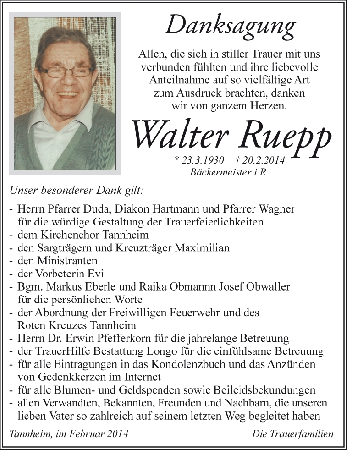 Kondolenzbuch für Walter Ruepp