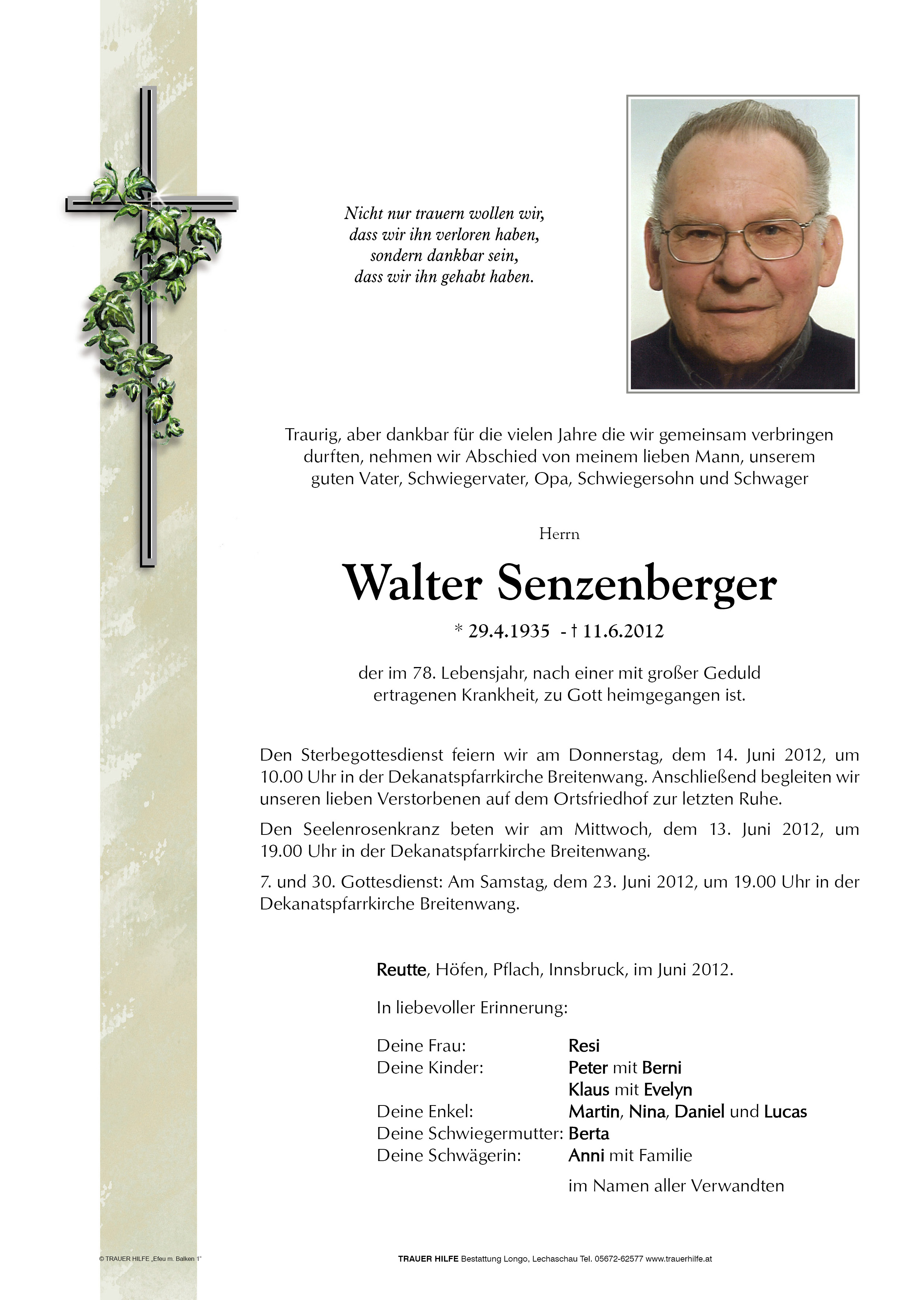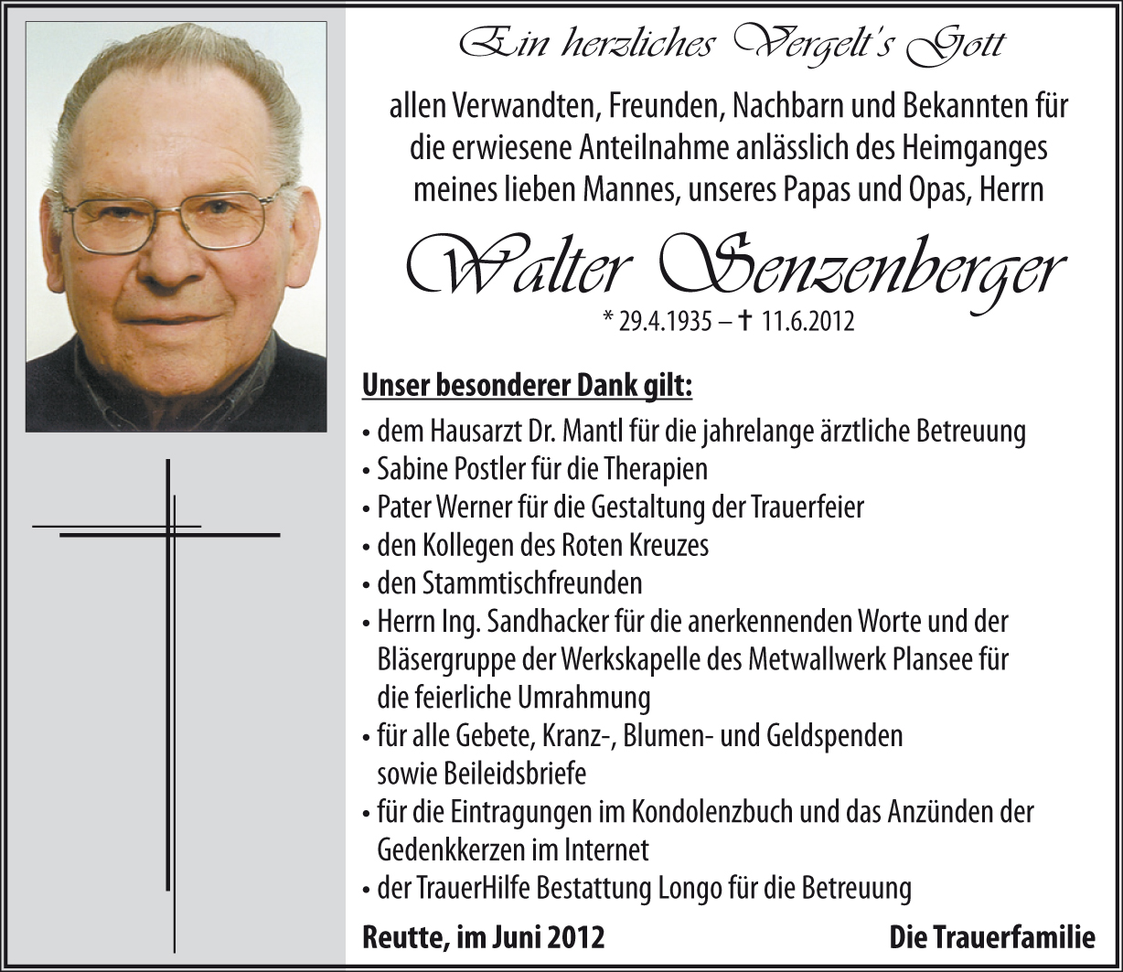 Kondolenzbuch für Walter Senzenberger