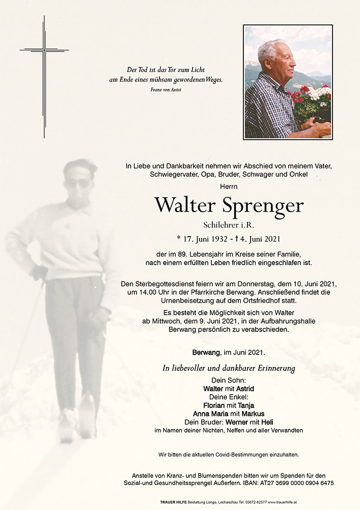 Kondolenzbuch für Walter Sprenger